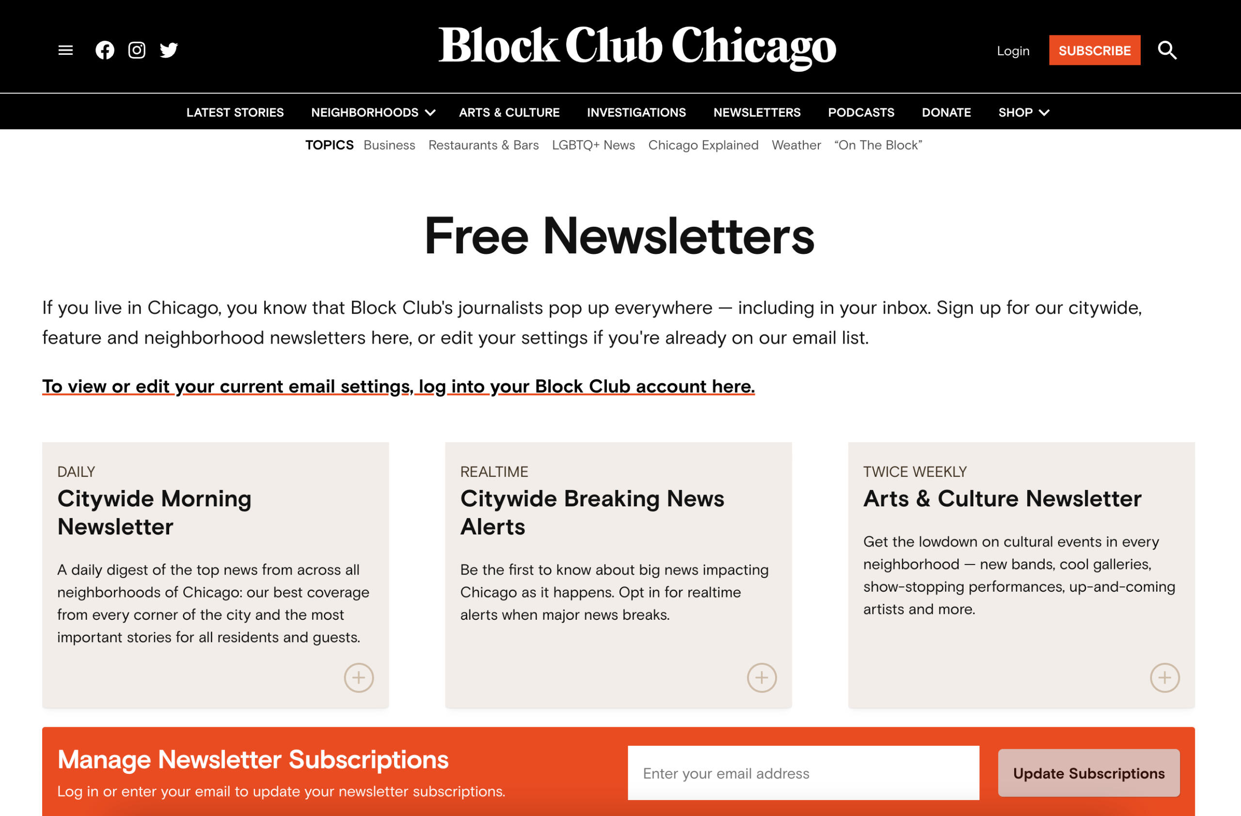 Block Club Chicago wanted a newsletter management block that integrated with their Paywall and Newsletter provider.We built them a dynamic and responsive block which can be used on any page or template.